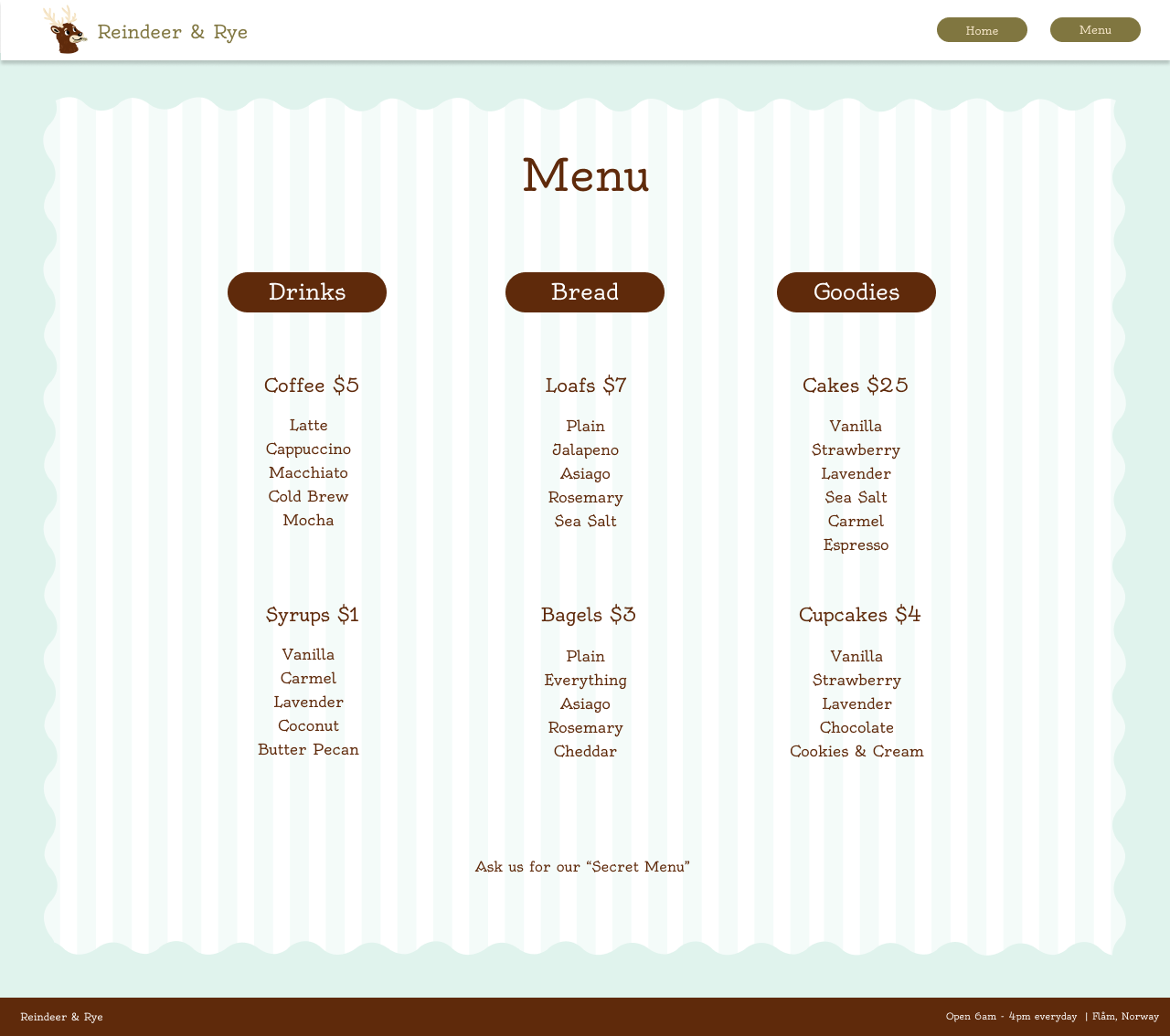 The final website successfully establishes a clear visual identity for Reindeer & Rye, presenting the bakery as a stylish yet comforting destination.